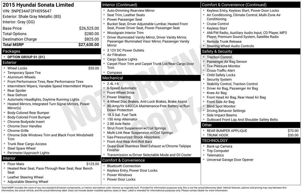 Whether you're commuting to the office or embarking on a weekend getaway, this 2015 Hyundai Sonata Limited is the perfect companion. Experience the perfect blend of style, comfort, and performance that this exceptional sedan has to offer. Contact us today to schedule a test drive and discover why the Sonata is the smart choice for your next vehicle.