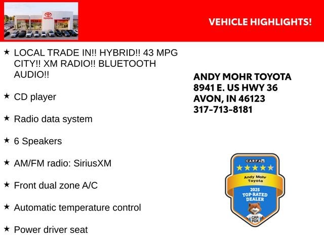 - LOCAL TRADE IN!! HYBRID!! 43 MPG CITY!! XM RADIO!! Bluetooth® AUDIO!!