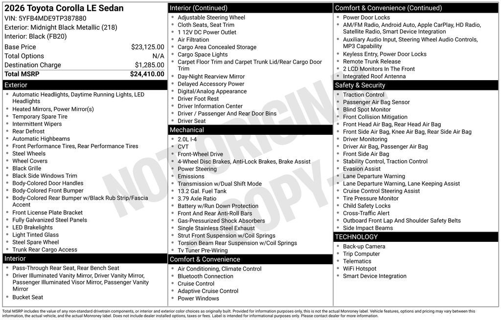 We invite you to visit our showroom and experience this exceptional 2026 Toyota Corolla LE for yourself. Our knowledgeable team is here to answer any questions and help you discover why this Corolla LE is the perfect fit for your driving needs. We look forward to earning your business and helping you get behind the wheel of this impressive sedan.
